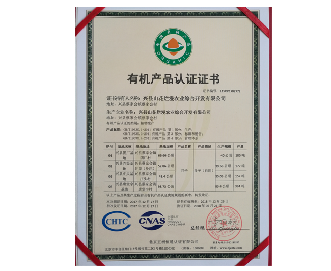 • 有機(jī)產(chǎn)品認(rèn)證證書