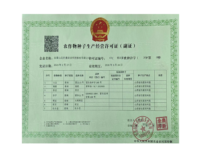 • 農(nóng)作物種子生產(chǎn)經(jīng)營(yíng)許可證(副證)